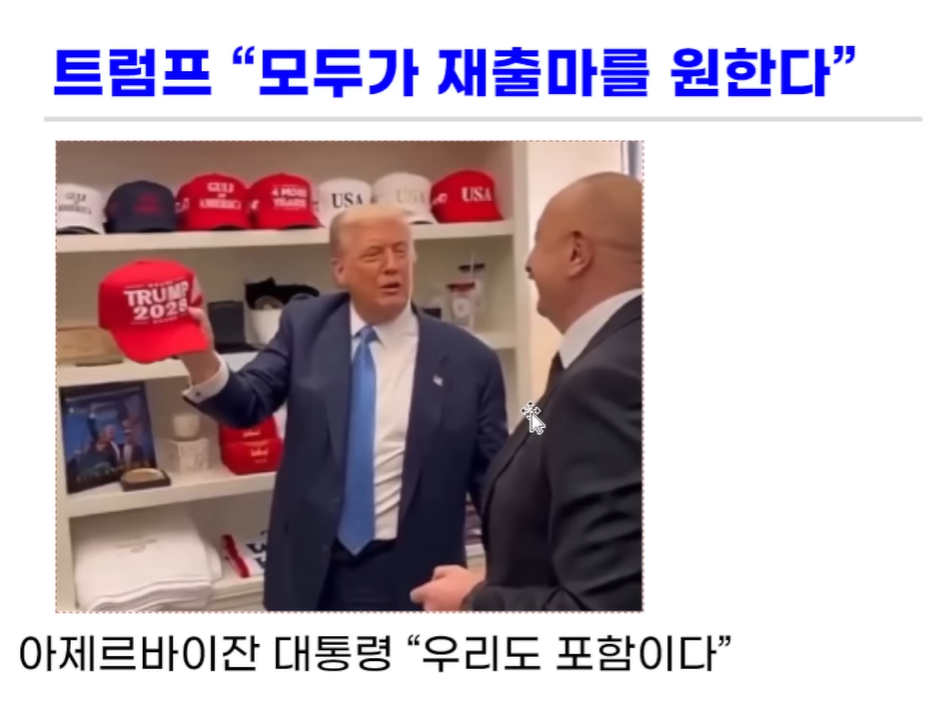 아제르바이잔 휴전 협상을 백악관에서 했는데 3선을 요구하는 여론을 슬쩍 보여줬습니다.